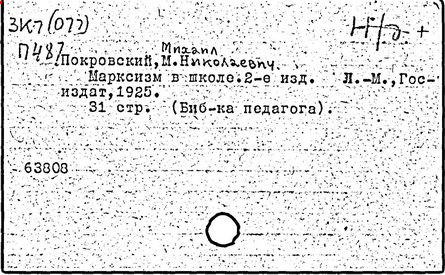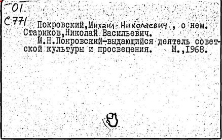 Литература: Пистрак M., M. H. Покровский как работник народного просвещения и педагогики, Ростов н/Д., 1932; Ганелин III. И., M. H. Покровский - видный деятель советского просвещения и педагогики, Советская педагогика, 1963, № 9; Когонашвили К. К., Роль M. H. Покровского в перестройке школьного исторического образования, "Ученые записки МОПИ", 1967, т. 198, в. З; Равкин З. И, Выдающийся теоретик и руководитель новой школы M. H. Покровский, в сб. Творцы и новаторы школы, рожденной Октябрем, M., 1990; Чернобаев А. А., "Профессор с пикой", или Три жизни историка M. H. Покровского, M., 1992.