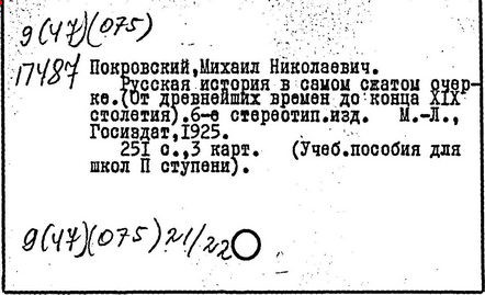 С марксистских позиций обосновывал концепцию развития России, уделив особое внимание социально-экономическим вопросам, а также классовой борьбе. Исследованиям Покровского присущи экономический детерминизм (гипертрофированная роль торгового капитала), тенденции к коммунистической идеологизации и модернизации исторического процесса. Автор "Русской истории в самом сжатом очерке" (ч. 1-3, 1920-1923 гг.), ставшей популярным учебным пособием, которое неоднократно переиздавалось. Покровский и его единомышленники стремились к распространению своих подходов в изучении исторического процесса как единственно верных. В конце 30-х гг. научная школа Покровского подверглась по отдельным положениям справедливой, но в целом крайне тенденциозной, критике (сборник "Против исторической концепции Покровского", 1939 г., и "Против антимарксистской концепции Покровского", 1940 г.).