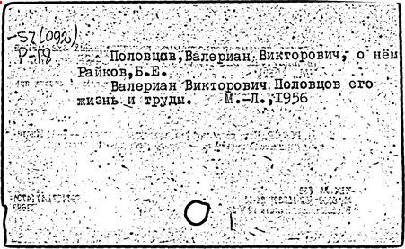 Литература: Райков Б. Е., В. В. Половцов, его жизнь и труды, М.-Л., 1956 (библ.).