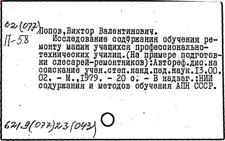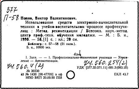 [Текст]/ В.В. Попов; НИИ шк., Отд. профтехобразования.