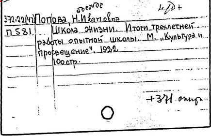 Литература: Меньшикова Е. А., "Школа жизни" Н. И. Поповой, Начальная школа, 1990, № 2; Богуславский М. В., Соловьев В. А., "Школа жизни" Поповой, "Магистр", 1992, № 6.