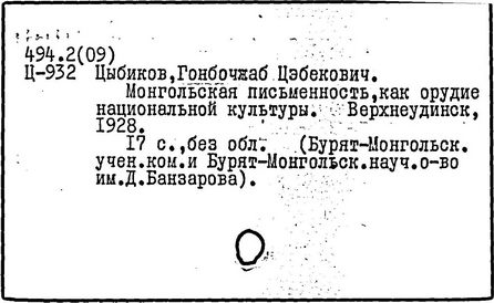 Литература: M. К столетию со дня рождения профессора Г. Ц. Цыбикова: сб. ст. и материалов. Улан-Удэ, 1976.