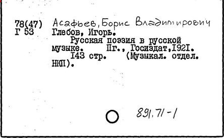 Литература: Орлова Е., Крюков А. Академик Б. В. Асафьев. Л., 1984; Крюков А. Б. В. Асафьев. Л., 1984; Б. В. Асафьев и советская музыкальная культура. Материалы Всесоюзной научно-теоретической конференции. М., 1986.