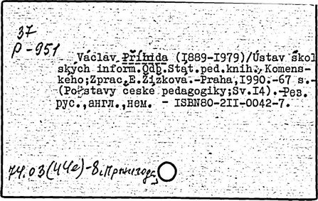 Литература: Сach J. Nĕkolik pŕípravných pohledu na hodnocení odkazu Vaclava Pŕíhody // Pedagogika. – 1985. – № 2;Vánová R. Školská reforma v ČSR ve 30. letech. Praha, 1994.