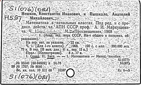 К.И. Нешков, А.М. Пышкало // Нач. шк. -1996. -N 10. - С. 40-47