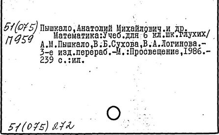 Математика [Текст]: Учеб. для 6 кл. шк. глухих/