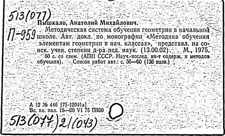 А.М. Пышкало; НИИСМО АПН СССР. -Москва, 1975. -60 с.: рис.,