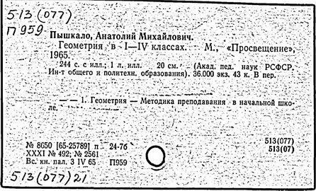 А.М. Пышкало. -6-е изд., перераб. -М.: Просвещение, 1995. -