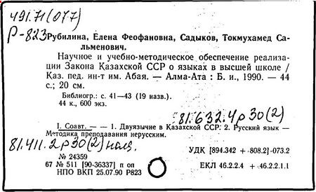 Основные научные работы: «Историческое сознание и нравственность» (1986 г.), «Концепция становления и развития народного образования Казахстана» (1992 г.), «Уроки истории» (1993 г.), «Методика прогностической модели специалиста» (1994 г.), «Воспитание историей» (1994 г.), «Краткая история США» (1995 г.), «Концепция образования в классическом университете» (1997 г.), «Введение в историческую демографию» (1998 г., в соавторстве), «Воспитание культуры межнационального общения» (1999 г.), «Теория и практика высшей школы Казахстана на пути реформ» (2000 г.), «Высшая школа Казахстана на пути реформ» (2000 г.), «Интеллектуальный облик будущего» (2005 г.), более 300 научных публикаций.