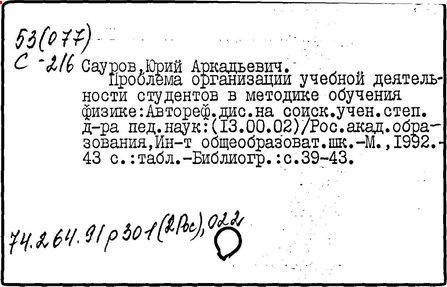 Ю. А. Сауров // ФИЗИКА В ШКОЛЕ. - М.: Шк.-Пресс, 2009. -№ 8. -