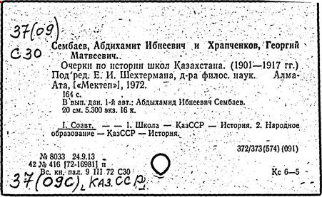 Автор историко-педагогических трудов на русском языке: "История развития советской школы в Казахстане" (1962 г.), "Очерки по истории школ Казахстана. 1901-1917" (1972 г.; совм. с Г. М. Храпченковым).