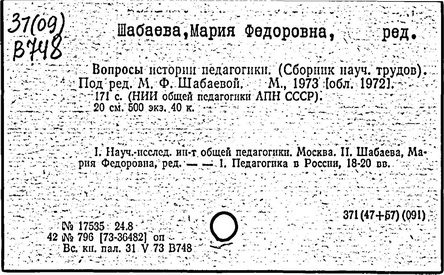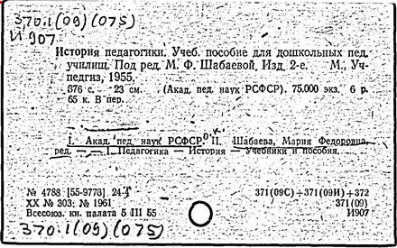 Источник: Российская педагогическая энциклопедия: В 2 тт. /Гл. ред. В.В. Давыдов. – М.: «Большая Российская энциклопедия», Т. 2, 1999, с. 572.