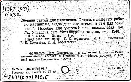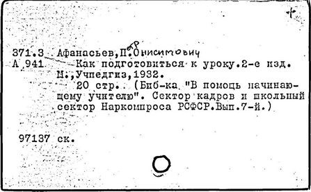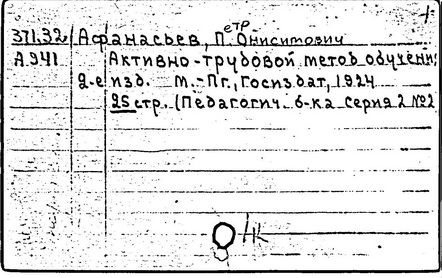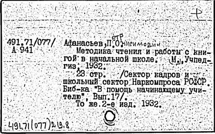 Литература: Редозубов С. П., П. О. Афанасьев, в сборнике: Методисты советской начальной школы, М., 1958.