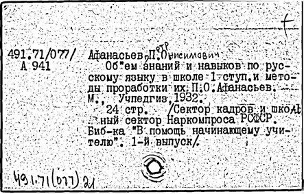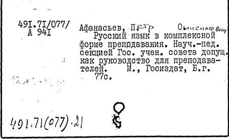 П. О. Афанасьева]/ В. А. Телкова // РУССКИЙ ЯЗЫК В ШКОЛЕ.- М.: