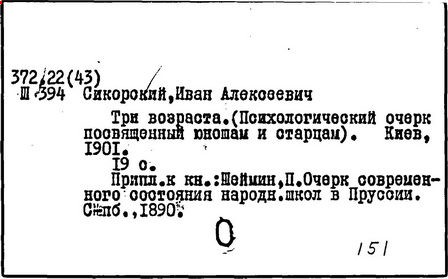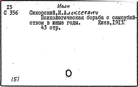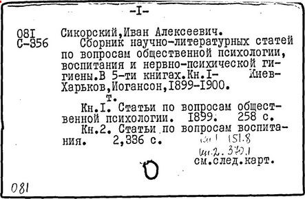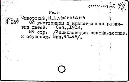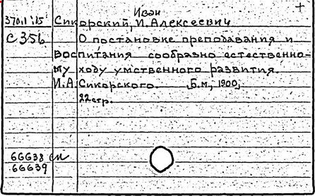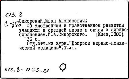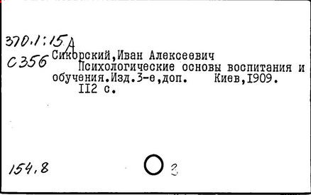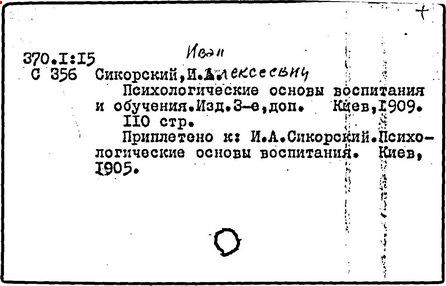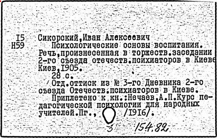 Литература: Никольская А. А., Некоторые аспекты творческого наследия И. А. Сикорского, в кн.: Исторический путь психологии: прошлое, настоящее, будущее, M., 1992; Черная Л. Г., Наследие А. Сикорского и современная психология, там же; Никольская А. А., И. А. Сикорский. Гармония развития и воспитания, "Педагогика", 1994 г., № 3.