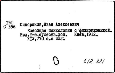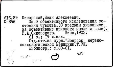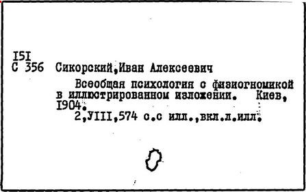 В области психологии монография Сикорского "Всеобщая психология с физиогномикой, в иллюстративном изложении" (1912 г.) явилась крупнейшим и наиболее значительным для своего времени обобщающим трудом по этой проблематике.