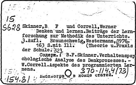 Последующие годы были поворотными в жизни Скиннера. Он выступил инициатором программированного обучения, изобретая обучающие машины и сочиняя программы («Teaching machines» // (Eds.) Lumsdaine A. A., Glaser R.; «Teaching machines and programmed learning». NEA, 1960). Способствовал развитию бихевиористской (поведенческой) психотерапии, основанной на научении методом проб и ошибок, опираясь на убеждение в том, что главным открытием 3. Фрейда являлись не комплексы вины и агрессии, а сохранение моделей поведения, усвоенных в детстве. К периоду 1960 –1970-х годов относится отход экспериментальной психологии от идеи «стимул – реакция» (например, теории К. Халла) и все большее ее углубление в когнитивную психологию и теоретический язык, основанный на компьютерном моделировании. Яростные нападки Ноама Хомского на «Вербальное поведение» Скиннера еще более активизировали этот процесс, поскольку это была скорее атака на теорию «стимул – реакция», чем на функциональный анализ Скиннера.