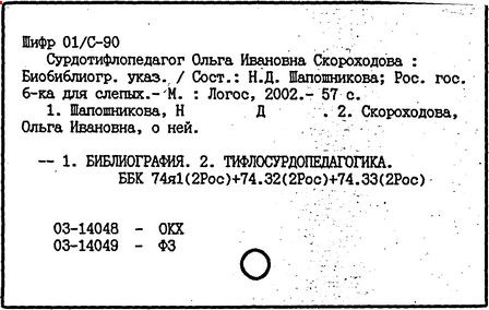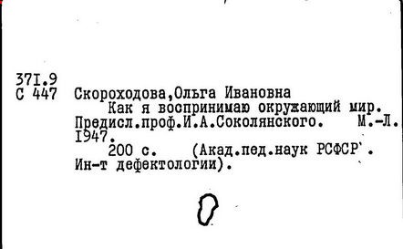 Литература: О. И. Скороходова, "Дефектология", 1974, № 6; О. И. Скороходова. [Некролог], там же, 1982, № 4.