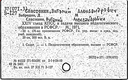 работах В. А. Сластенина [Текст]: [1930-2010 гг.]/