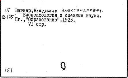 Литература: Рогинский Г. 3., В. А. Вагнер, «Советская педагогика», 1940, № 1; Петровский А. В., История советской психологии. М., 1967.