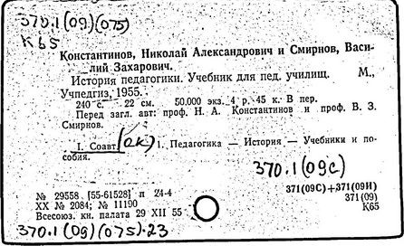 Литература: Константинов H. A., Серьезное исследование по истории русской педагогики, Советская, 1955, № 2; В. 3. Смирнов. [Некролог], Советская педагогика, 1962, № 12.