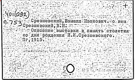 Литература: Ламайский В. И., И. И. Срезневский (1812—1880), М., 1890; Измаил Иванович Срезневский. Краткий биографический очерк, СПБ, 1913; Памяти Измаила Ивановича Срезневского, кн. 1, П., 1916; Смирнов С. В., Измаил Иванович Срезневский (1812—1880), "Русская речь", 1972, № 6.