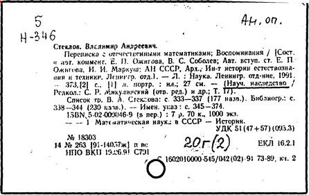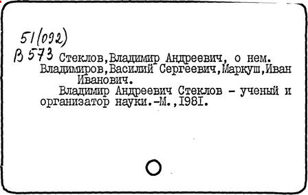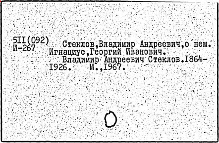 Литература: Памяти В. А. Стеклова. Сб. ст., Л., 1928 (лит.); Смирнов В. И., Памяти Владимира Андреевича Стеклова, "Тр. Математического института им. В. А. Стеклова", 1964, т. 73; Игнациус Г. И., Владимир Андреевич Стеклов, М., 1967; Владимиров В. С., Маркуш И. И., Академик В. А. Стеклов, М., 1973 (лит.).
