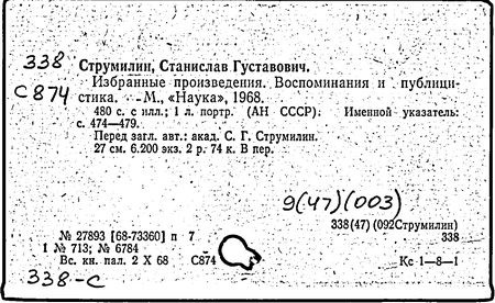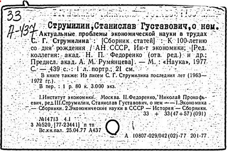 Литература: С. Г. Струмилин, М.. 1968; Проблемы экон. науки и практики. Сб. статей, поев. 95-летию С. Г. Струмилина, М., 1972; Марцинкевич В. И., Образование в США: экон. значение и эффективность, М., 1967.