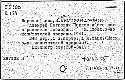 Литература: В. А. Варсанофьева, в кн.: Наливкин Д. В., Наши первые женщины-геологи, Л., 1979; В. А. Варсанофьева, в кн.: Шатский Н. С., Яншин А. Л., Портреты геологов, М., 1986; Шиманскиа В. Н., Барская В. Ф., В. А. Варсанофьева как педагог, "Бюллетень Московского общества испытателей природы, отд. геологический", 1977, т. 52, в. 6; Куштысев Е. А., В. А. Варсанофьева. Указатель литературы, Сыктывкар, 1977.