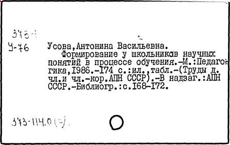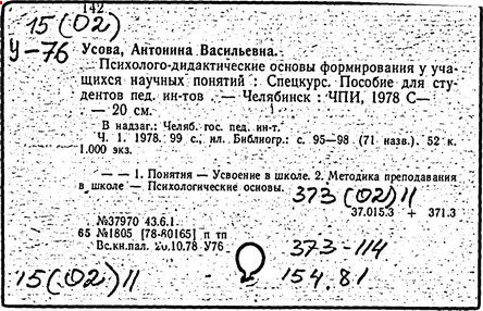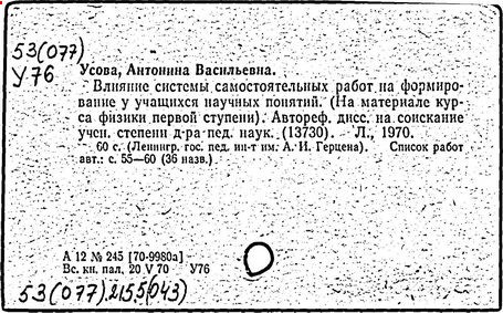 изучения предметов естественного цикла [Текст]/ А. В. Усова // НАУКА