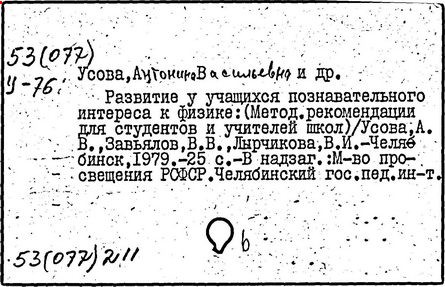 [на примере физики]/ А. В. Усова // НАУКА И ШКОЛА. -М.: МПГУ, 2006.