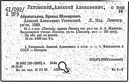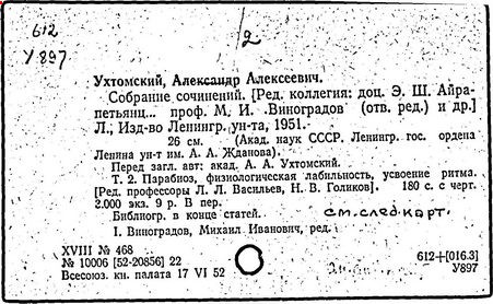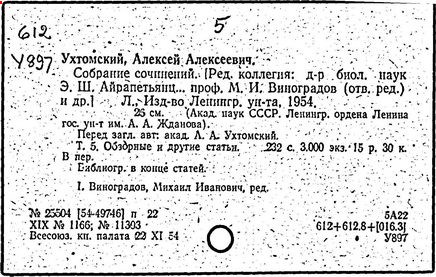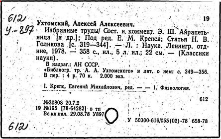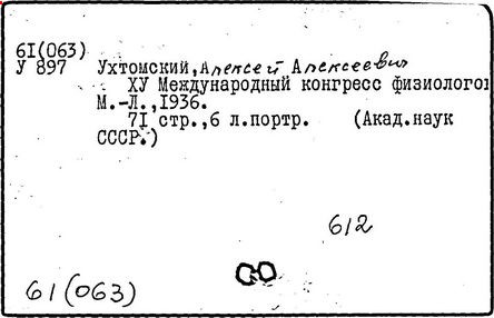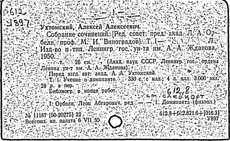 [Ухтомский А.А. - сов. физиолог, акад. Акад. наук