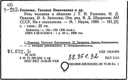 Ин-та психологии АПН СССР]/ Т.Н. Ушакова //