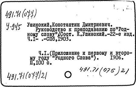Литература об учебных книгах для начального обучения К. Д. Ушинского