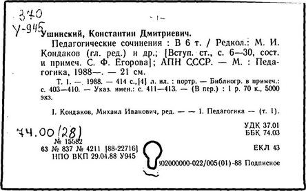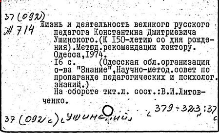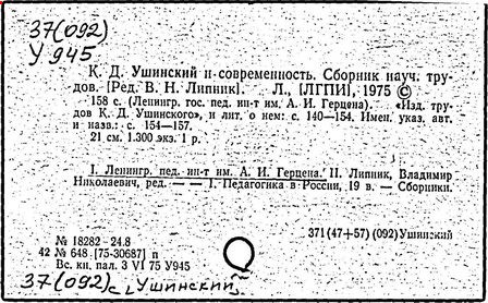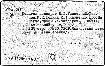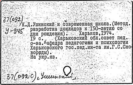К. Д. Ушинского: (историогр. очерк)", с. 8-23;