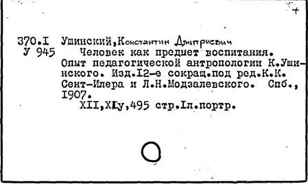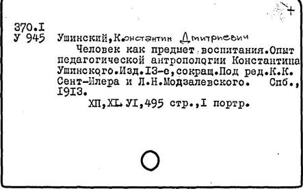 Воспитание Ушинский рассматривал как "создание истории". Предметом воспитания является человек, и если педагогика хочет воспитывать человека во всех отношениях, то она должна прежде узнать его тоже во всех отношениях. Это означало изучение физических и психических особенностей человека, влияний "непреднамеренного воспитания" - общественной среды, "духа времени", его культуры и общественных идеалов. Педагогика, организуя процесс целенаправленного ("преднамеренного") воспитания, использует достижения наук о человеке, которые Ушинский называл "антропологическими", - философии, политэкономии, истории, литературы, психологии, анатомии, физиологии и др. Антропологическая позиция Ушинского в осмыслении физиологических и психических процессов позволила ему решать на высоком научном уровне фундаментальные педагогические проблемы, особенно в области дидактики. Связи с педагогикой наук, в которых изучается природа человека, наиболее полно раскрыты им в капитальном труде "Человек как предмет воспитания. Опыт педагогической антропологии" (1868-1869 гг.).