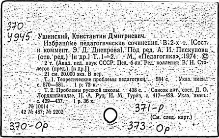 Перечень ст. и материалов К. Д. Ушинского, не включ. во 2