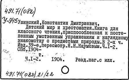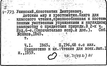 Для чтения взрослыми детям/ К.Д. Ушинский, тексы для чтения;