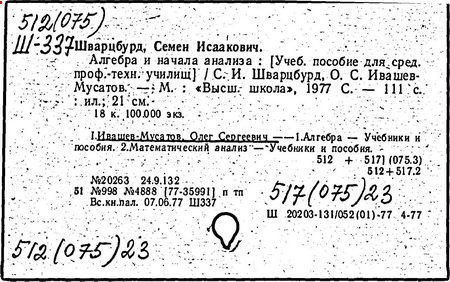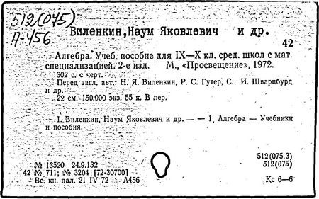Н. Я. Виленкин, О. С. Ивашев-Мусатов, С. И. Шварцбурд. -13-е изд.,