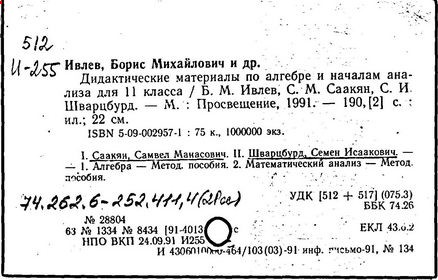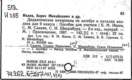 О.С. Ивашев-Мусатов, С.И. Шварцбурд. -7-е изд. -М.: Мнемозина, 2000.