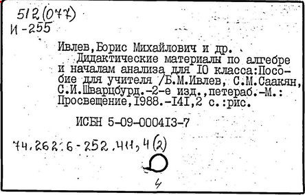 Н. Я. Виленкин, О. С. Ивашев-Мусатов, С. И. Шварцбурд. -4-е изд. -