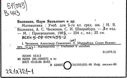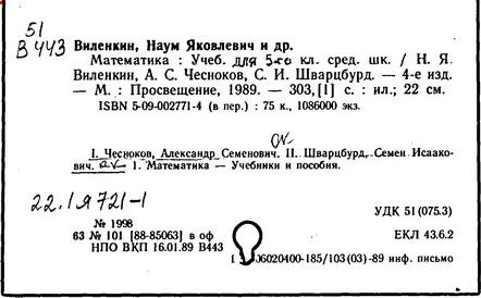 [Н. Я. Виленкин, А. С. Чесноков, С. И. Шварцбурд, В. И. Жохов].