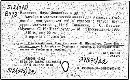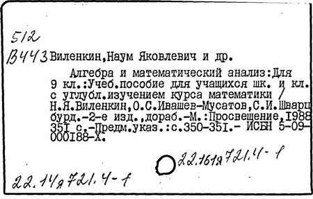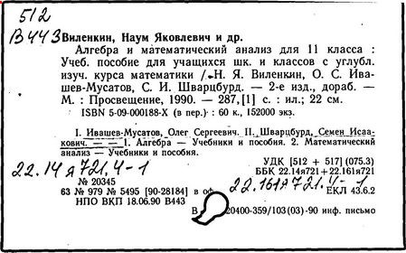 Н. Я. Виленкин, О. С. Ивашев-Мусатов, С. И. Шварцбурд. -14-е изд.,