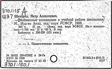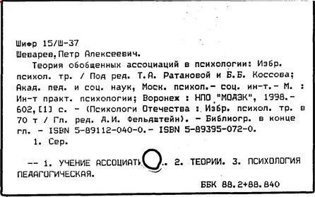 Литература: Коссов Б. Б., Ратанова Т. А., О теории обобщенных ассоциаций П. А. Шеварева, « Вопросы психологии, 1982, № 5.