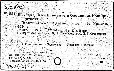 Источник: Российская педагогическая энциклопедия: В 2 тт. /Гл. ред. В.В. Давыдов. – М.: «Большая Российская энциклопедия», Т. 2, 1999, с. 582-583.