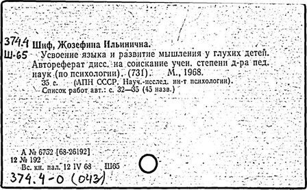 российский психолог, дефектолог. Специалист в области общей психологии, сурдопсихологии, олигофренопсихологии. Доктор психологических наук (1968 г.), профессор (1970 г.). Награждена орденом «Знак почета» (1954 г.), была отмечена премиями АПН СССР. Родилась в Варшаве. После окончания Ленинградского педагогического института им. А. И. Герцена (1926 г.), семь лет работала учительницей младших классов массовой школы. В 1930-1932 гг. училась в аспирантуре Ленинградского педагогического института, проводила исследования под руководством Л. С. Выготского и защитила кандидатскую диссертацию на тему «Развитие научных понятий у школьников» (1934 г.). В 1935 г. опубликовала книгу с тем же названием с предисловием Л.С. Выготского. В 1936 г. в связи с «разгромом» педологии была лишена ученой степени кандидата педагогических наук (восстановлена в 1946 г.). Вся последующая научная деятельность Шиф (1934-1978 гг.) была связана с НИИ дефектологии АПН (с 1993 - Институт коррекционной педагогики РАО). Изучала проблемы обучения и психического развития аномальных детей, уделяя особое внимание формированию речи и мышления у глухих и умственно отсталых школьников, а также общим вопросам специальной психологии. В 1941-1942 гг., находясь в эвакуации в г. Куйбышеве, заведовала Методическим кабинетом детских Домов, организовывала детские дома для детей, вывезенных из Ленинграда после первого прорыва блокады. В 1943-1945 гг. участвовала в работе госпиталя черепно-мозговых ранений (руководитель - академик Н. Н. Бурденко), восстанавливала речь раненым. В послевоенные годы уделяла большое внимание изучению развития умственной деятельности глухих детей при усвоении ими грамматического строя языка; изучались также сенсорные предпосылки овладения речью, аграмматизмы глухих, их отношение к овладению словесной речью, влияние обучения на изменение этих отношений в ходе развития детей, потенциальные возможности глухих учащихся. Много лет Шиф возглавляла лабораторию олигофренопсихологии, в которой по результатам исследований был создан ряд широко известных в области дефектологии книг. Наряду с исследовательской занималась преподавательской деятельностью: более четверти века (с 1945 г.) читала лекции по общей и специальной психологии в Городском педагогическом институте им. В. П. Потемкина и Государственном педагогическом институте им. В. И. Ленина. В своей научной деятельности сочетала два подхода к изучению аномальных детей - педагогический и психологический, всегда стремилась приблизить теоретические исследования к практике обучения. Основные труды: «Развитие научных понятий у школьников», М-Л., 1935; «Очерки психологии усвоения русского языка глухонемыми школьниками», М., 1954; «Усвоение языка и развитие мышления глухих детей», М., 1968; «Особенности умственного развития учащихся вспомогательной школы», М., 1965, соавтор и редактор; «Психология глухих детей», М., 1971, соавтор и редактор. Многие работы Шиф переведены на ряд иностранных языков.
