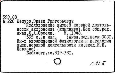 российский физиолог, психолог, доктор биологических наук (1946 г.), профессор. Учился в Военно-Медицинской академии в Ленинграде, работал под руководством И.П. Павлова и Л. Орбели в Павловской лаборатории условных рефлексов в академии. После окончания Ленинградского медицинского института (1936 г.) был зачислен на должность научного сотрудника биологической станции в Колтушах; с 1937 г. — заведующий лабораторией приматов; работал в Институте эволюционной физиологии Академии наук СССР; в отделе сравнительной физиологии Института экспериментальной медицины Академии медицинских СССР. Основное направление научной деятельности Вацуро — изучение высшей нервной деятельности животных, прежде всего антропоидов. При решении этой проблемы опирался на учение Павлова о высшей нервной деятельности. Им был установлен ряд специфических закономерностей высшей нервной деятельности антропоидов ("Исследование высшей нервной деятельности антропоида (шимпанзе)", 1948 г.; "Исследование высшей нервной деятельности человекообразных обезьян", 1957 г.). Полученный материал о развитии психики антропоидов показал ограниченность их интеллекта. Изучение сложных форм высшей нервной деятельности животных различного филогенетического уровня позволило выявить не только общие их закономерности, но и раскрыть свойственные животным разного уровня нервной организации специфические закономерности, обусловленные особенностями эволюционного развития и экологическими факторами ("Очерк эволюции нервной деятельности", в соавторстве, 1964 г.). Изучал условно-рефлекторные реакции на отношения у животных, находящихся на различных уровнях эволюционного развития (слон, высшие и низшие обезьяны), и у детей разного возраста (раннего школьного и дошкольного) как в норме, так и в патологии. Установил, что абсолютное преобладание рефлекса на отношение над рефлексом на конкретные признаки, четко проявляющееся у нормальных детей в возрасте 10—11 лет, не наблюдается у детей-олигофренов даже в возрасте 15—16 лет при ярко выраженном доминировании у них рефлекса на конкретные признаки раздражителей. Обнаружено внешнее сходство реакции животных и реакций детей раннего дошкольного возраста и в то же время их обусловленность различными физиологическими механизмами ("Сравнительное изучение рефлекса на отношение у нормальных детей и у олигофренов" / Вопросы психологии, 1959 г.). Исследовал также физиологические основы отражения и развитие их в процессе эволюции, ориентировочный и исследовательский рефлексы и их развитие в онто- и филогенезе.