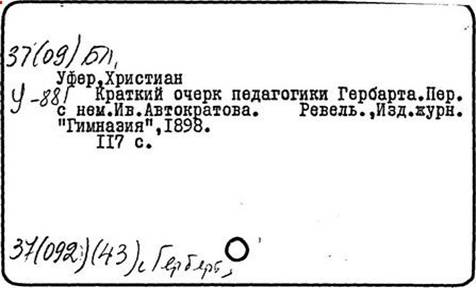 Литература: И. Ф. Гербарт, в книге: Пискунов А. И., Советская историко-педагогическая литература, М., 1960, с. 68-69 (библ.); Вallauff Th., Sсhаller K., Padagogik. Eine Geschichte der Bildung und Erziehung, Bd 3. Vom 19/20 Jahrhundert, Munch., 1973.