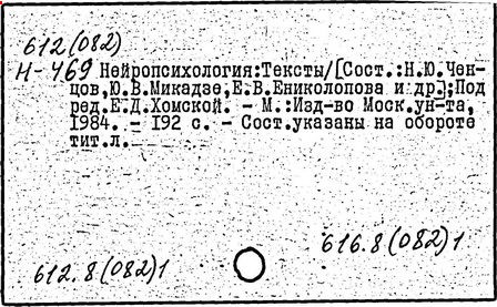 Хрестоматия по нейропсихологии [Текст]/ под ред.