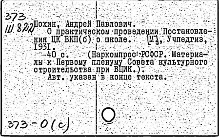 Литература: Виноградов А., Руднев П., А. Шохин, Народное образование, 1966, № 12.